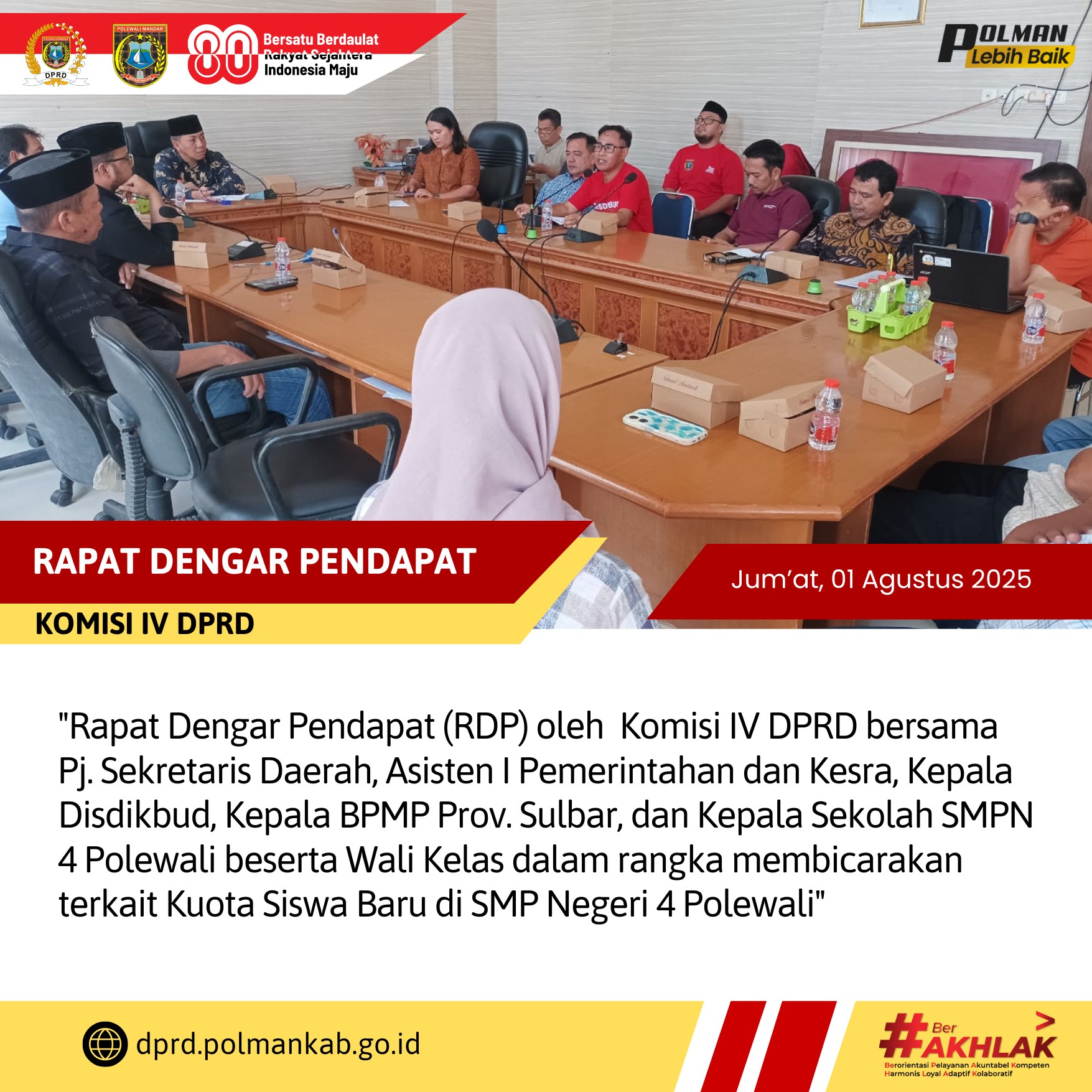 KOMISI IV MENGGELAR RDP TERKAIT KUOTA SISWA BARU DI SMPN 4 POLEWALI...