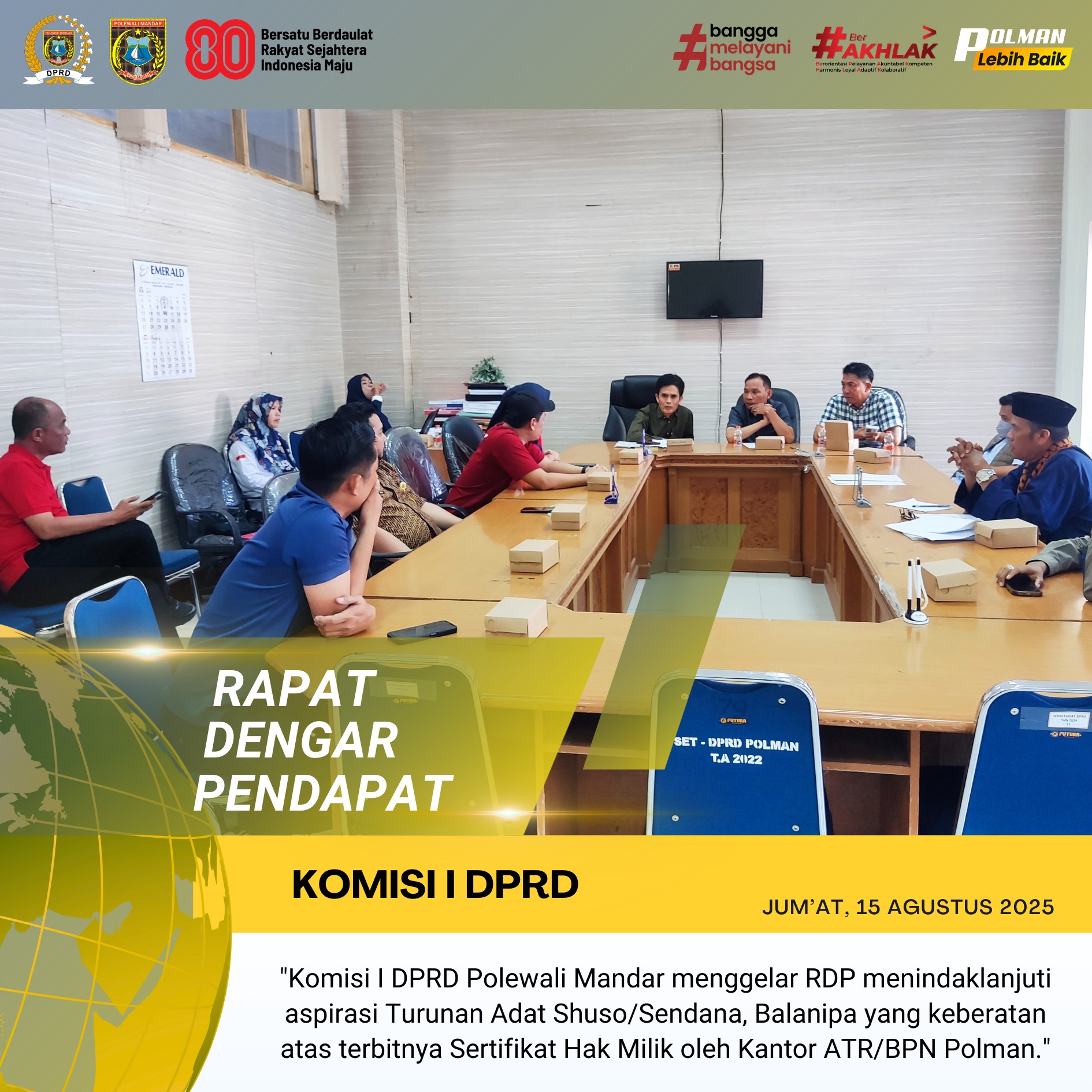 KOMISI I DPRD POLMAN MENGGELAR RDP DALAM RANGKA MENINDAKLANJUTI ASPIRASI TURUNAN ADAT SHUSO/SENDANA...